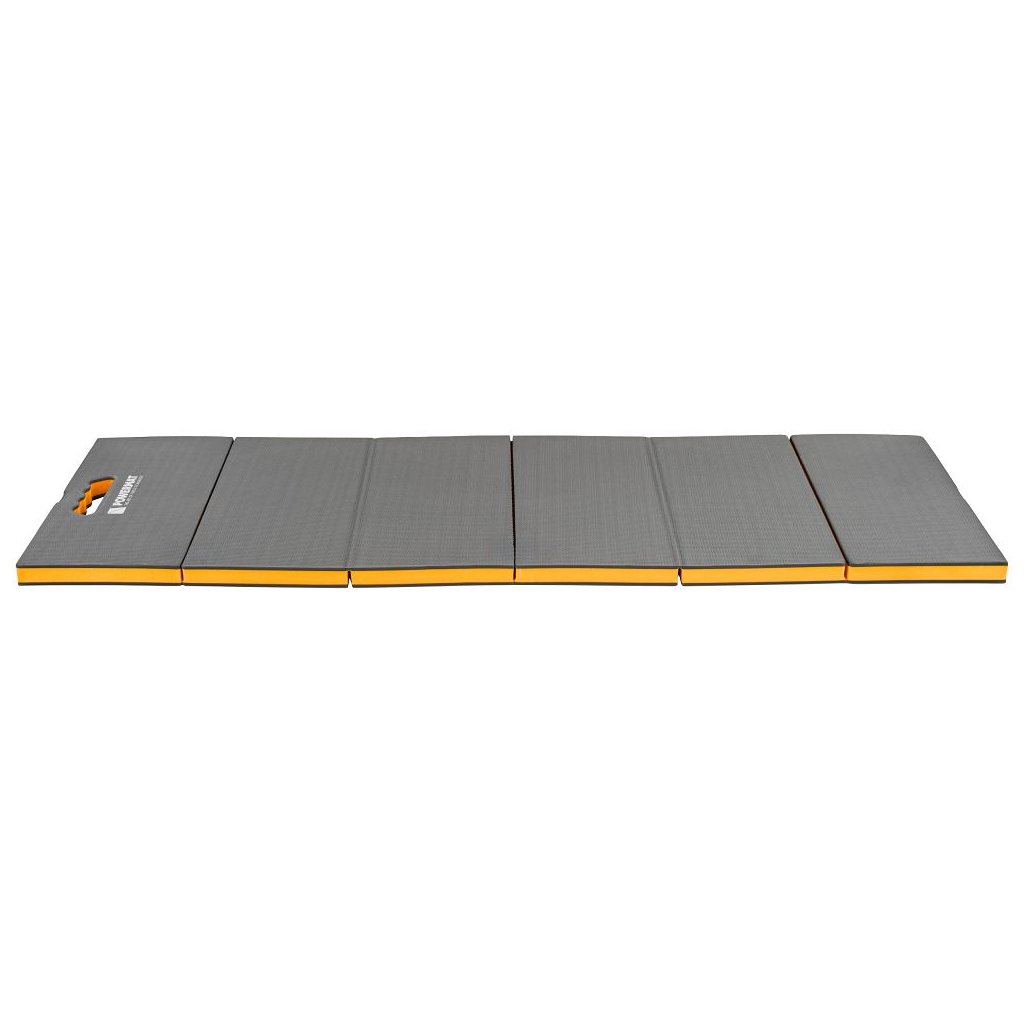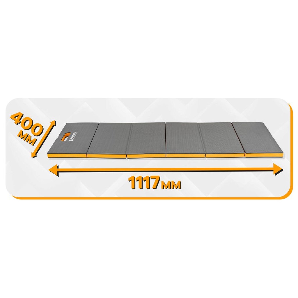 Lehká a odolná dílenská podložka PM-MWR-117T z pěny EVA (tloušťka 30 mm) tlumí tlak i vibrace, izoluje od chladu a vlhkosti a výrazně zvyšuje komfort při klečení i ležení. Šestidílná skládací konstrukce se přizpůsobí podlaze, usnadní přenášení i skladování; texturovaný protiskluzový povrch stabilizuje pracovní polohu. Uzavřená buněčná struktura neabsorbuje vodu, díky čemuž je podložka snadno omyvatelná a vhodná do dílny, domu, na zahradu i do terénu. Součástí je popruh se suchým zipem pro rychlé stažení do kompaktního tvaru.