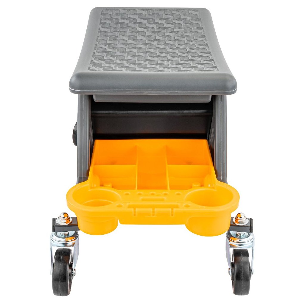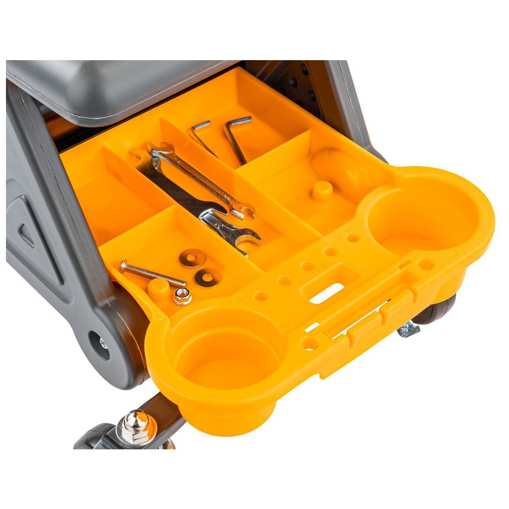 Dílenské sedátko Powermat PM-SWA-200T zvyšuje ergonomii práce na nízké výšce. Kompaktní rozměry 67 × 25,5 × 35 cm usnadňují manévrování v omezeném prostoru, robustní konstrukce zajišťuje stabilitu a dlouhou životnost. Sedák 46 × 25,5 cm poskytuje jistou oporu při delších úkonech, kolečka s brzdami umožňují plynulý přesun i bezpečné zafixování. Tři vyjímatelné misky udržují nářadí a drobnosti po ruce, takže práce probíhá rychleji a organizovaněji.