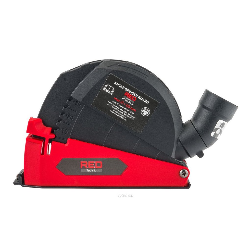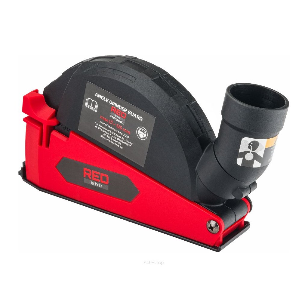 Kompaktní kryt na ochranu proti prachu a odsávání prachu od společnosti RED TECHNIC speciálně navržený pro použití s úhlovými bruskami různých značek. Díky univerzálnímu adaptéru funguje s jakýmkoli vysavačem. Vhodné pro kotouče o průměru 115 - 125 mm.
