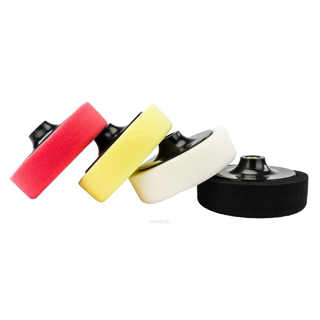 - Červená - středně měkká (např. pro jednokrokovou korekci laku pomocí univerzálních leštících past; zanechá velmi dobrý povrch a zároveň si poradí s vybroušením středně velkých škrábanců)
