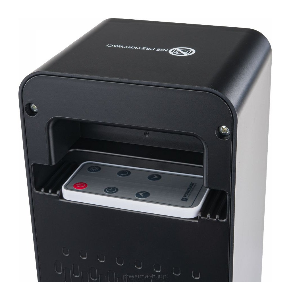 - Na zadní straně ohřívače je prostor, kam můžete umístit dálkové ovládání a pohybovat zařízením pomocí drážkované rukojeti.