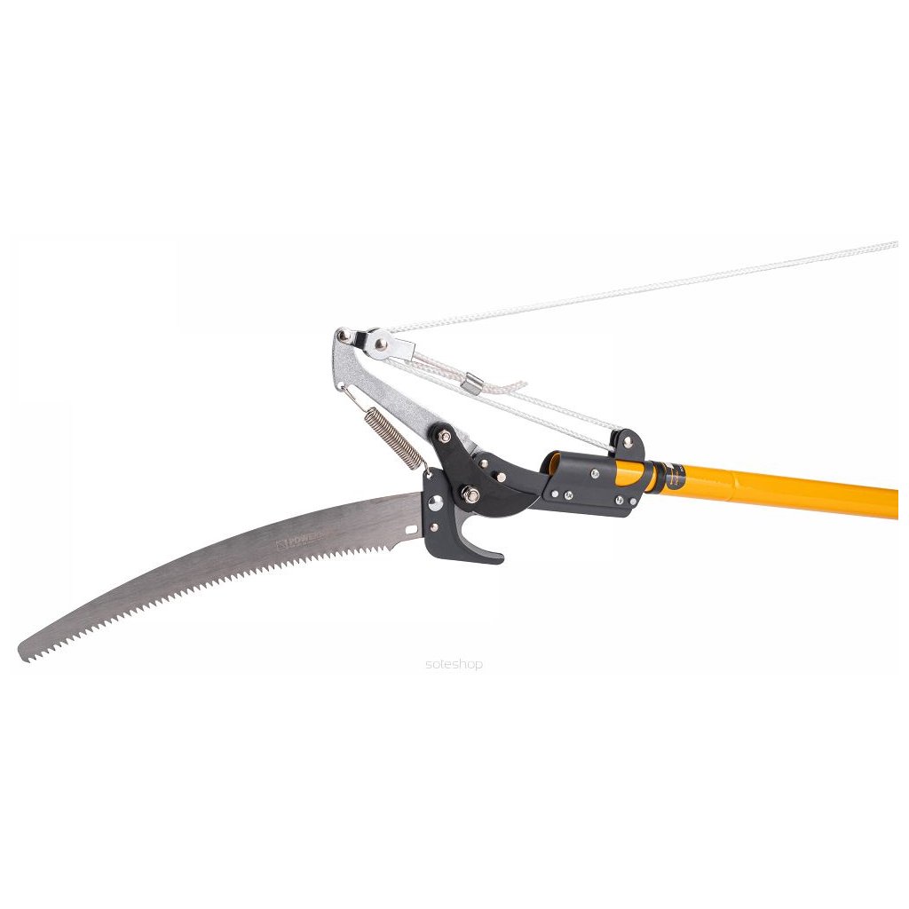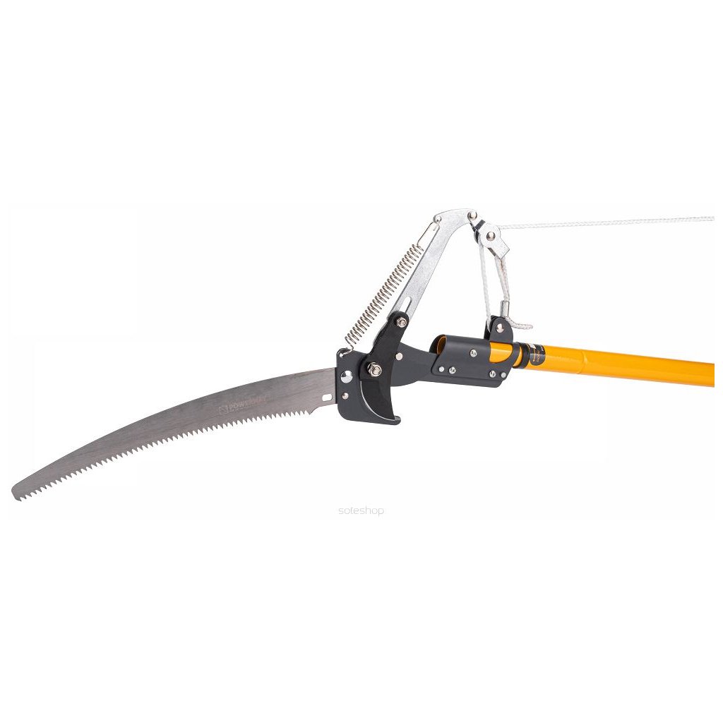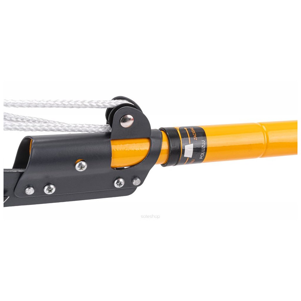 Díky pásovému mechanismu dosahujeme maximální řezné síly při minimální síle. Zahradnické nůžky se aktivují zatažením za lano s připevněnou rukojetí. Nůžky umožňují montáž na dlouhé rameno nebo tyč, takže dosáhnete opravdu vysoko.