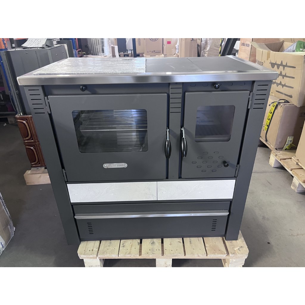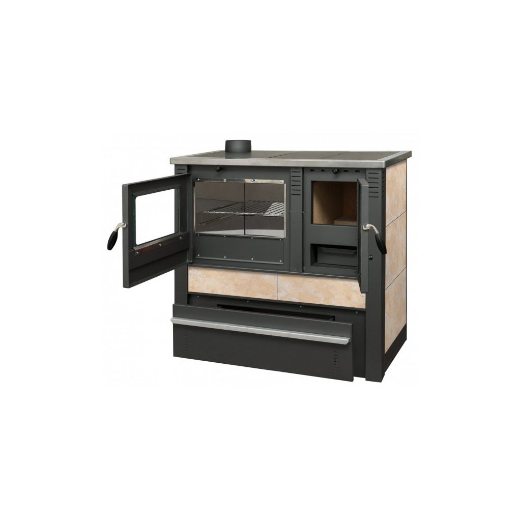 Vaření a ohřev zároveň - tento problém je vyřešen elegantním, praktickým a racionálním způsobem; s prostornou nerezovou troubou a varnou plochou je možné tepelně zpracovávat potraviny zcela nezávisle na elektřině nebo plynu. To šetří dřevo i životní prostředí a snižuje zbytky po spalování. Oddělený přívod primárního a sekundárního vzduchu zajišťuje optimální energetický výnos. Ocelové plechy válcované za studena v kombinaci s pálenými cihlami jsou materiály, ze kterých se kamna vyrábějí. To vše přispívá k jejich spolehlivosti a účinnosti. Strany trouby PANONIA jsou potaženy keramikou té nejvyšší kvality, která udržuje teplo. V případě jakéhokoli mechanického poškození lze keramiku snadno vyměnit podle pokynů k produktu. Speciální ohnivzdorné sklo na topeništi a dvířkách trouby může dosahovat teploty až 850 ° C. Vlevo nahoře je pečicí prostor a přípojka kouřovodu 120 mm. Kouřovody lze čistit bez demontáže kouřovodu. Součástí výbavy je i praktická nádoba na popel pro snadné vyprazdňování a pečící rošt. PANONIA jsou kamna, která se snadno používají a udržují. Během procesu ohřevu zůstávají rukojeti chladné. Jako palivo použijte dřevěné kulatiny, dřevěné brikety, dřevěné uhlí a uhelné brikety. PANONIA splňuje standard CE, což znamená, že je v souladu s nejpřísnějšími předpisy EU o bezpečnosti a energetické účinnosti.
