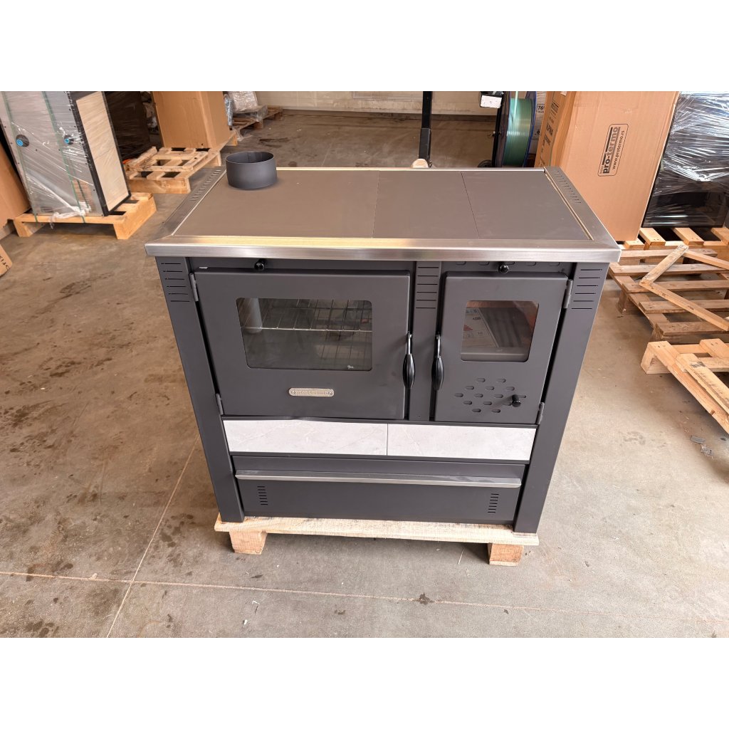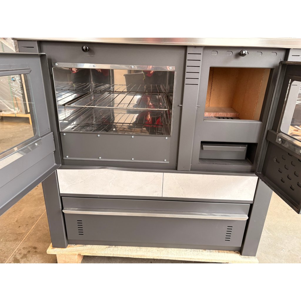 Vaření a ohřev zároveň - tento problém je vyřešen elegantním, praktickým a racionálním způsobem; s prostornou nerezovou troubou a varnou plochou je možné tepelně zpracovávat potraviny zcela nezávisle na elektřině nebo plynu. To šetří dřevo i životní prostředí a snižuje zbytky po spalování. Oddělený přívod primárního a sekundárního vzduchu zajišťuje optimální energetický výnos. Ocelové plechy válcované za studena v kombinaci s pálenými cihlami jsou materiály, ze kterých se kamna vyrábějí. To vše přispívá k jejich spolehlivosti a účinnosti. Strany trouby PANONIA jsou potaženy keramikou té nejvyšší kvality, která udržuje teplo. V případě jakéhokoli mechanického poškození lze keramiku snadno vyměnit podle pokynů k produktu. Speciální ohnivzdorné sklo na topeništi a dvířkách trouby může dosahovat teploty až 850 ° C. Vlevo nahoře je pečicí prostor a přípojka kouřovodu 120 mm. Kouřovody lze čistit bez demontáže kouřovodu. Součástí výbavy je i praktická nádoba na popel pro snadné vyprazdňování a pečící rošt. PANONIA jsou kamna, která se snadno používají a udržují. Během procesu ohřevu zůstávají rukojeti chladné. Jako palivo použijte dřevěné kulatiny, dřevěné brikety, dřevěné uhlí a uhelné brikety. PANONIA splňuje standard CE, což znamená, že je v souladu s nejpřísnějšími předpisy EU o bezpečnosti a energetické účinnosti.