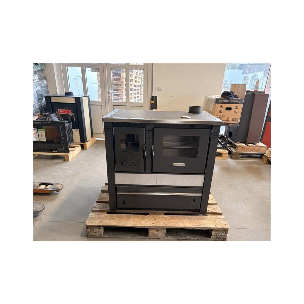 Vaření a ohřev zároveň - tento problém je vyřešen elegantním, praktickým a racionálním způsobem; s prostornou nerezovou troubou a varnou plochou je možné tepelně zpracovávat potraviny zcela nezávisle na elektřině nebo plynu. To šetří dřevo i životní prostředí a snižuje zbytky po spalování. Oddělený přívod primárního a sekundárního vzduchu zajišťuje optimální energetický výnos. Ocelové plechy válcované za studena v kombinaci s pálenými cihlami jsou materiály, ze kterých se kamna vyrábějí. To vše přispívá k jejich spolehlivosti a účinnosti. Strany trouby PANONIA jsou potaženy keramikou té nejvyšší kvality, která udržuje teplo. V případě jakéhokoli mechanického poškození lze keramiku snadno vyměnit podle pokynů k produktu. Speciální ohnivzdorné sklo na topeništi a dvířkách trouby může dosahovat teploty až 850 ° C. Vlevo nahoře je pečicí prostor a přípojka kouřovodu 120 mm. Kouřovody lze čistit bez demontáže kouřovodu. Součástí výbavy je i praktická nádoba na popel pro snadné vyprazdňování a pečící rošt. PANONIA jsou kamna, která se snadno používají a udržují. Během procesu ohřevu zůstávají rukojeti chladné. Jako palivo použijte dřevěné kulatiny, dřevěné brikety, dřevěné uhlí a uhelné brikety. PANONIA splňuje standard CE, což znamená, že je v souladu s nejpřísnějšími předpisy EU o bezpečnosti a energetické účinnosti.