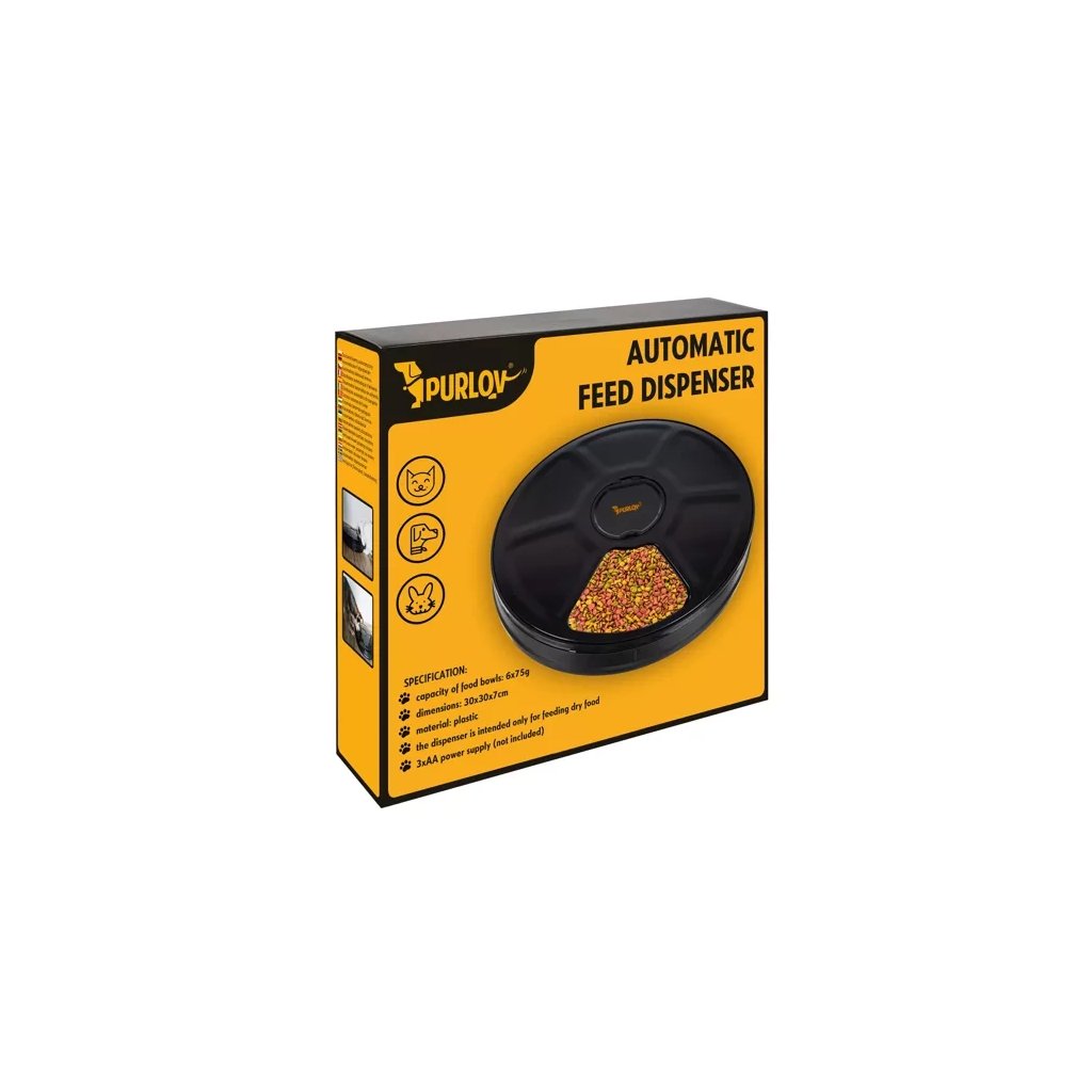 Automatický dávkovač potravin Purlov 20759 je ideálním řešením pro majitele domácích mazlíčků, kteří chtějí mít jistotu, že jejich pes, kočka nebo králík dostane jídlo včas, i když nejsou doma. Zařízení je vybaveno časovačem, LED displejem a šesti dávkovacími komorami, které umožní naprogramovat krmení až na 24 hodin dopředu.