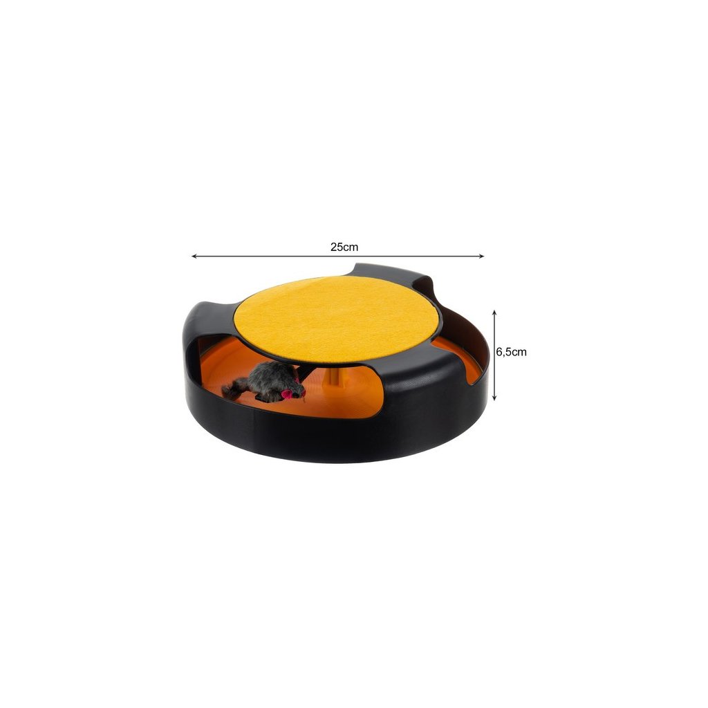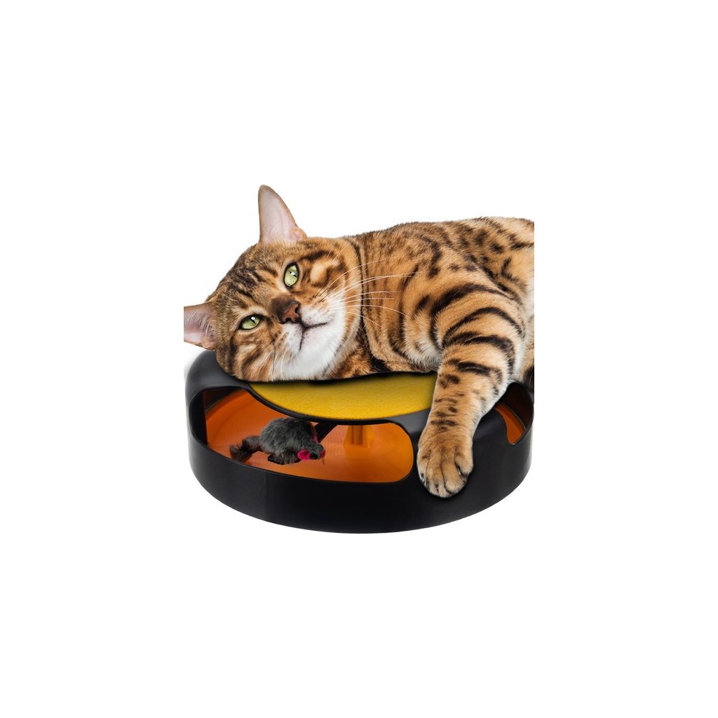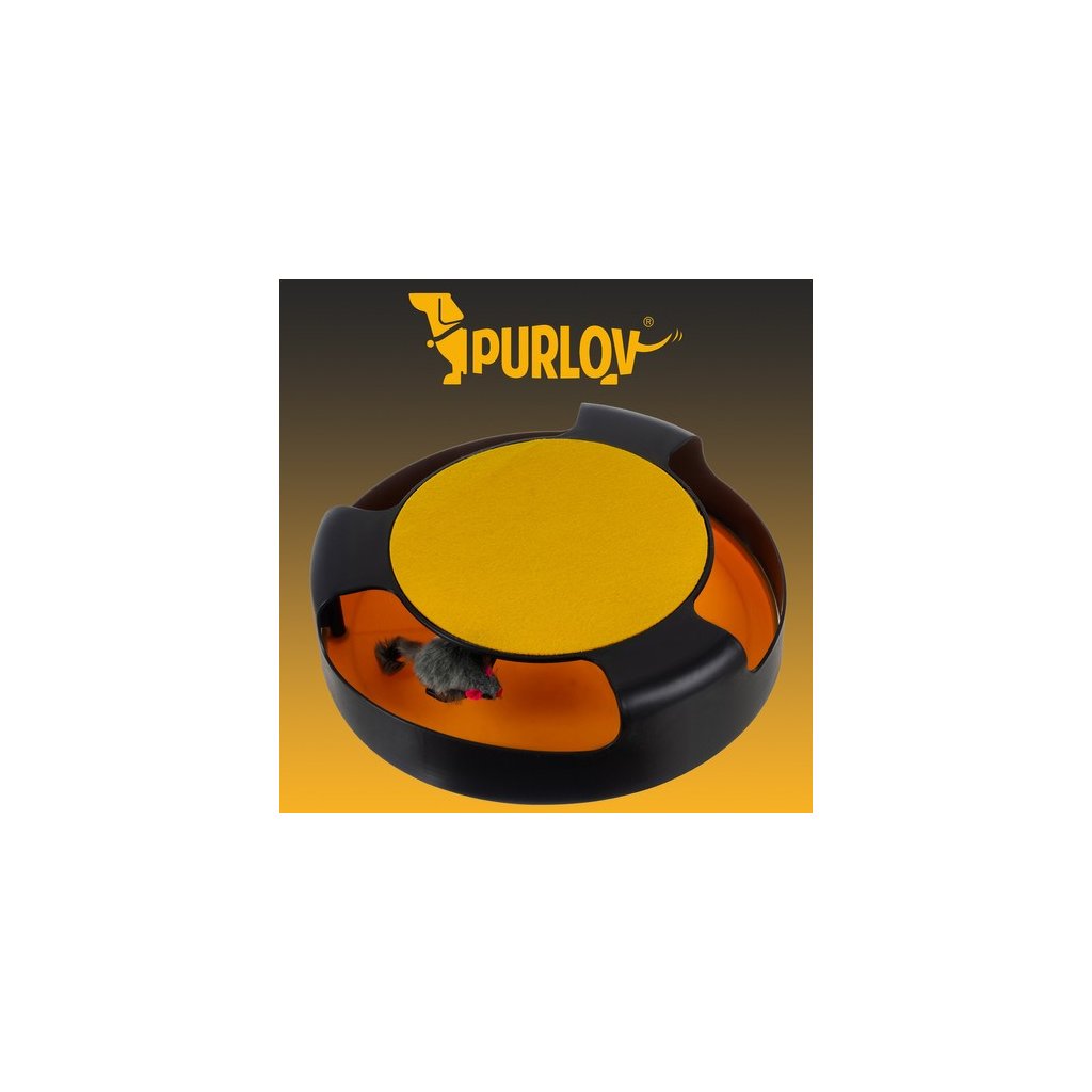 Interaktivní hračka pro kočky Purlov 5404 kombinuje pohybující se myš uvnitř kruhové dráhy s horní plochou sloužící jako škrabadlo. Je navržena tak, aby podporovala přirozené instinkty koček – lov, pohyb a škrábání. Tato hračka udrží vaši kočku aktivní, zabavenou a zároveň ochrání nábytek před poškozením. Díky protiskluzovým podložkám zůstává stabilní na jakémkoli povrchu.
