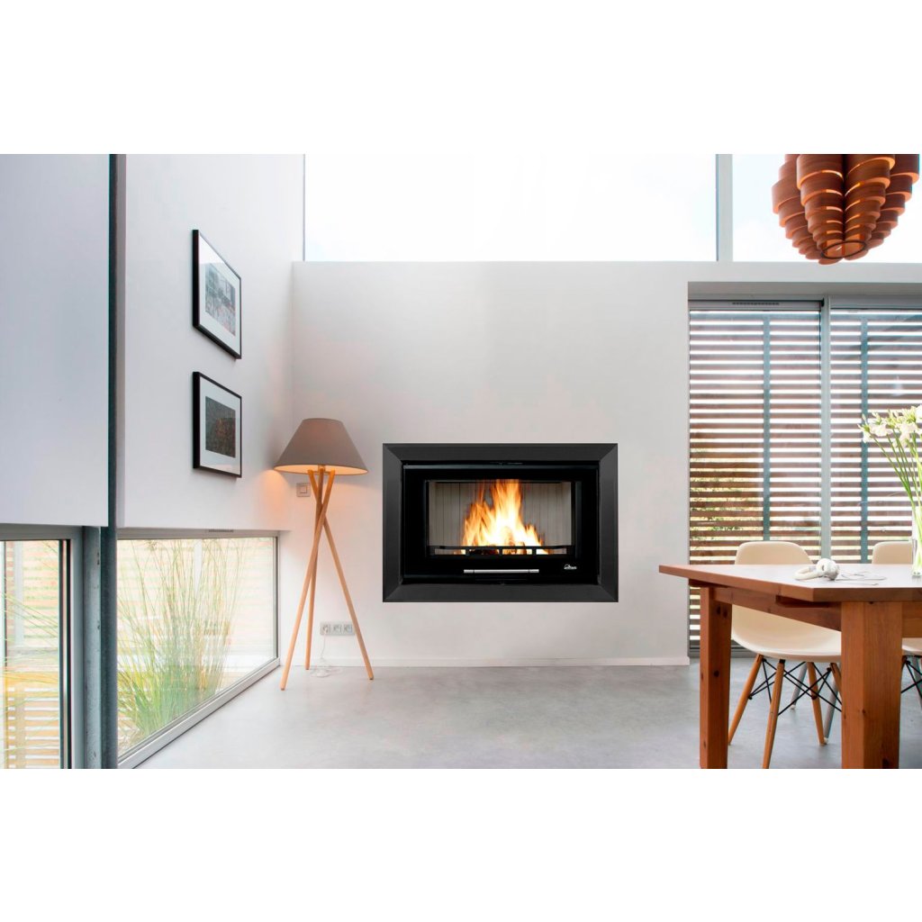 Jedná se o moderní a kvalitní krbovou vložku s velkým prosklením. Sklo je počerněné a poskytuje ideální pohled do ohně. Madlo kliky a k ovládání přívodu vzduchu, je vyrobeno z nerezové oceli a spolu s krbovou vložkou jako celek vytváří moderní design krbových vložek Uniflam EVO.