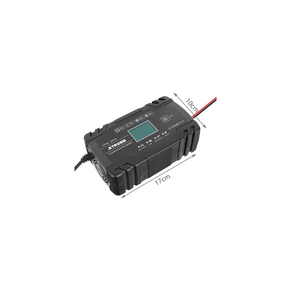 Automatická nabíječka baterií XTROBB 22463 s mikroprocesorovým řízením je ideální volbou pro nabíjení široké škály baterií – od kalciových přes gelové až po AGM a klasické olověné akumulátory. Automaticky rozpozná napětí baterie (12V nebo 24V) a přizpůsobí nabíjecí proud. Je vhodná pro použití v automobilech, motocyklech, lodích i zahradní technice.