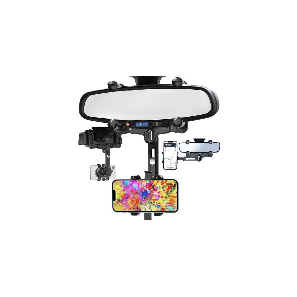 Otočný držák telefonu pro montáž na zrcátko v autě! Tento držák zajišťuje stabilní a bezpečné uchycení telefonu během jízdy díky pevnému držáku zpětného zrcátka a kvalitním materiálům. Je navržen tak, aby chránil zrcátko i telefon před poškrábáním a poškozením.